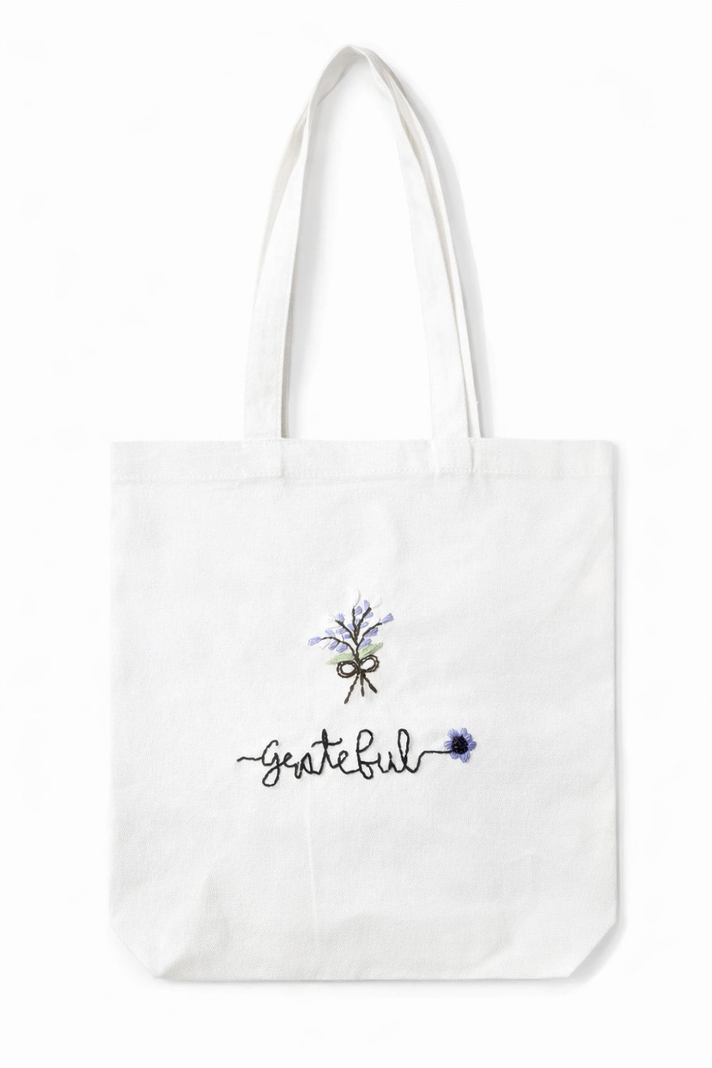 Carry gratitude wherever you go with this beautifully hand‑embroidered white tote bag, crafted from 100% soft cotton.